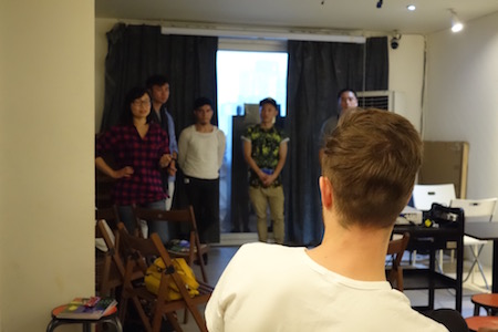 カウンターでユニンに聞いてもらったところによるとトークンは35元(700円弱)以下のビールなら何でもいいようで、40種類くらいあるメニューから買えそうなのを適当に選んで乾杯、いやあ楽しい。喫煙スペースは外なので一服しているとでかい欧米人が居たので挨拶する。モルテンという名前の彼はMIX COPENHAGEN(デンマークのクィア映画祭)の人で、今回プログラムを持ってきたとの事でしたがあれコペンハーゲンの人だったら3年前にテルアビブで会ったよ、と名前を告げると彼は嬉しそうに「おー、彼は親友だよ」と笑う。モルテンに明日の上映に来てね、と言う事とこの映画祭のあとはベルリンポルノ映画祭に行くんだ、と伝えると彼は眼を丸くして「そうなんだ、ウチの映画祭からもスタッフが行くから、ベルリンで会ったらいい」と言ってくれる。こういうのがあるから万難を排してでも映画祭には行かないとなんだよなあ、とすこし胸が焦げる。気がつくとさっきのオープニングイベントで見かけた映画祭メインスタッフで一番長身のメガネの男性(名前が判らない)が居たので呼んでくれてありがとう、と言うと「こちらこそ来てくれて嬉しい。ありがとう」と乾杯する。彼(名前が…)は「君らが『初戀』を上映した時に僕はスタッフをしていたので憶えているよ」と言ってくれたので当方はすみません、初めましてという事で。映画祭はどう、と聞くと「まあジェニーと僕には昨日公安から電話がきたりもしたんでちょっと用心してるけど、概ね大丈夫かな」との事。その後はしばし下らない話をして彼が一旦引っ込んだ隙にユニンにこっそり「今更だけど彼は何て名前?」と訊くと「彼?シャオガン」との事で反射的に「何だかシャワ浣みたいな名前やな」という風にして憶えたのは本人には内緒です。